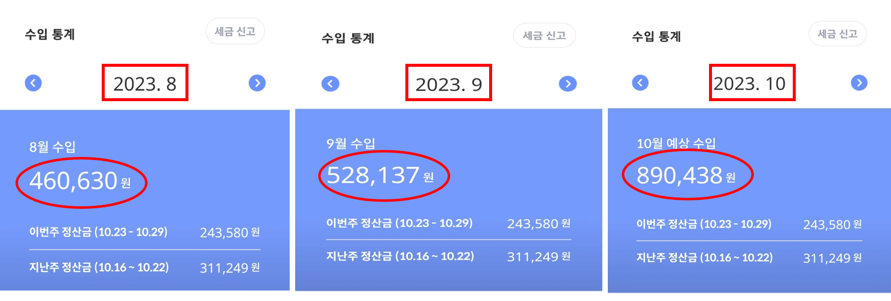 ▶ 10월 수입: 890, 438원 (시팅 횟수: 41회) 평일 2회씩 꾸준히 하고, 가끔 주말에 종일 돌봄(6시간)을 했습니다.