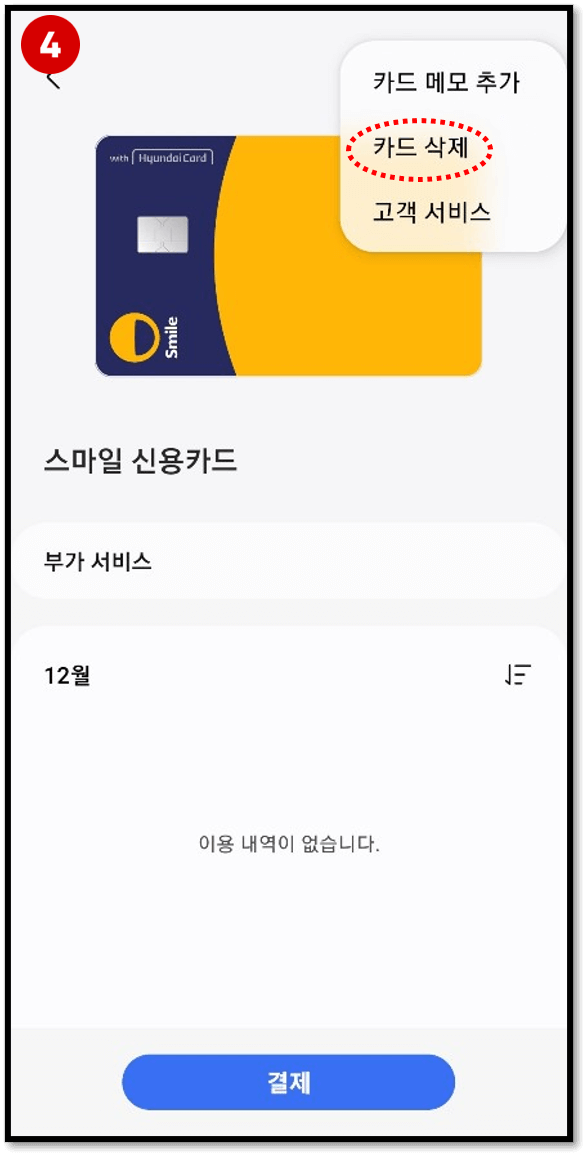 4) [카드삭제] 버튼을 누르면 삭제 완료.
