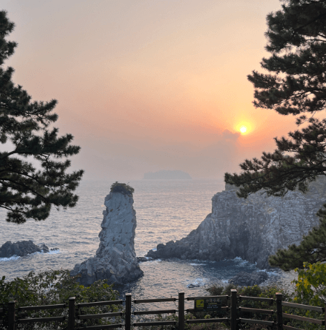 주변에 가볼만한 곳으로는 리조트에서 도보로 갈 수 있는 거리에 외돌개와 황우지해변이 있고 차량으로 1시간 거리에 성산일출봉 있습니다. 특히 황우지해변은 물이 굉장히 맑아서 여름에 다시 가서 스노쿨링 꼭 하고 싶더라고요.